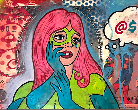 "A Girl and Her Thoughts" Neo-pop Art Original painting by Dr. Smash! 12x28