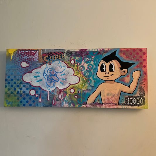 "ASTROBOY VS. THOUGHT BUBBLE" Neo-pop Art Original painting by Dr. Smash! 12x28